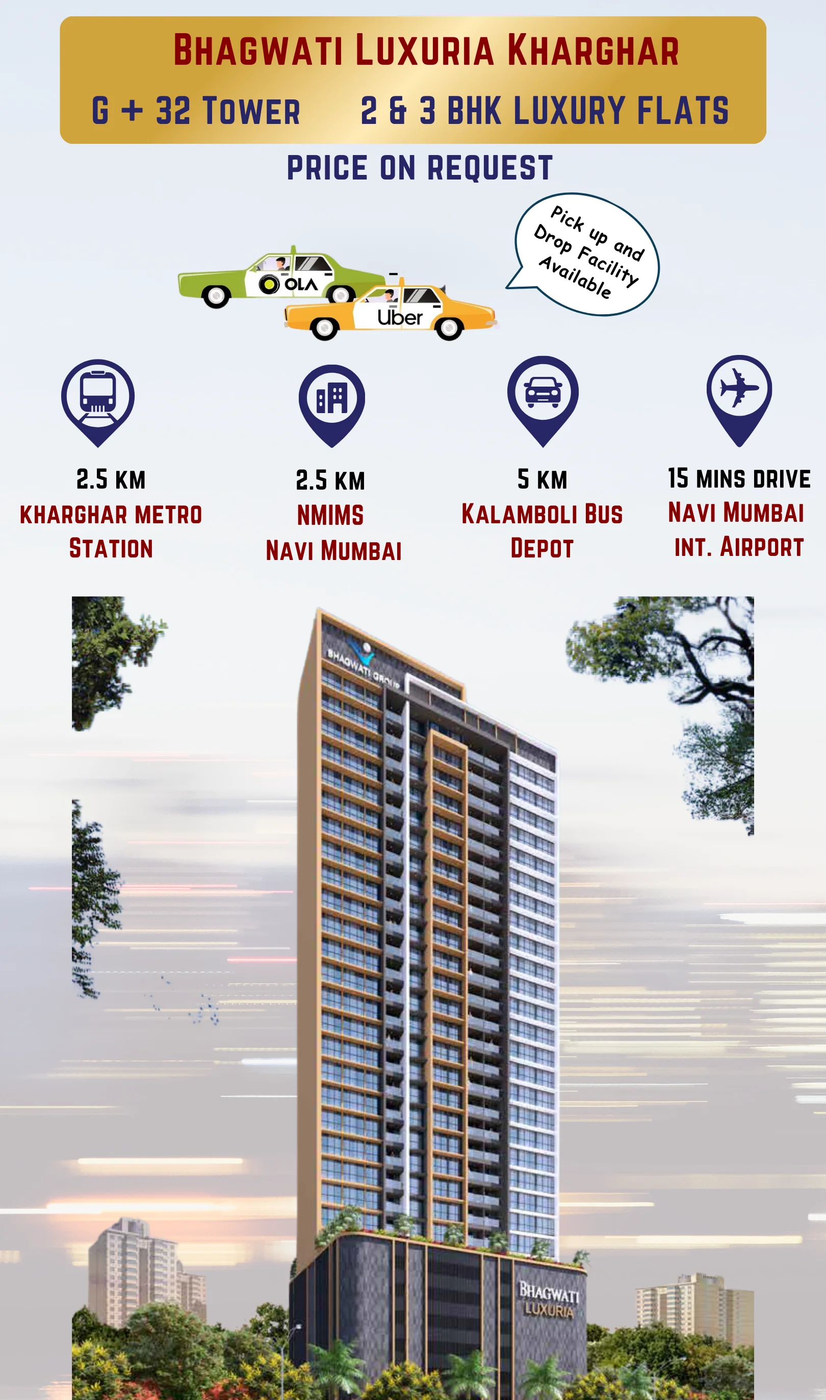 Welcome to Kharghar's Most Iconic Landmark: Bhagwati Luxuria! Experience an elevated lifestyle in this stunning G+32 Storeys tower, featuring meticulously designed 2 & 3 BHK residences. A home that redefines luxury, where every detail is crafted for an unparalleled ownership experience in Navi Mumbai.