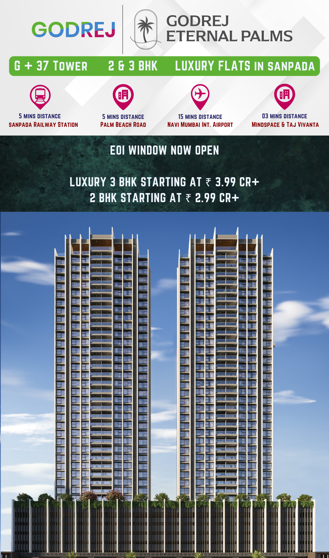Welcome to Sanpada's Most Iconic Landmark: Godrej Eternal Palm! Experience an elevated lifestyle in this stunning G+37 Storeys tower, featuring meticulously designed 2 & 3 BHK residences. A home that redefines luxury, where every detail is crafted for an unparalleled ownership experience in Navi Mumbai.