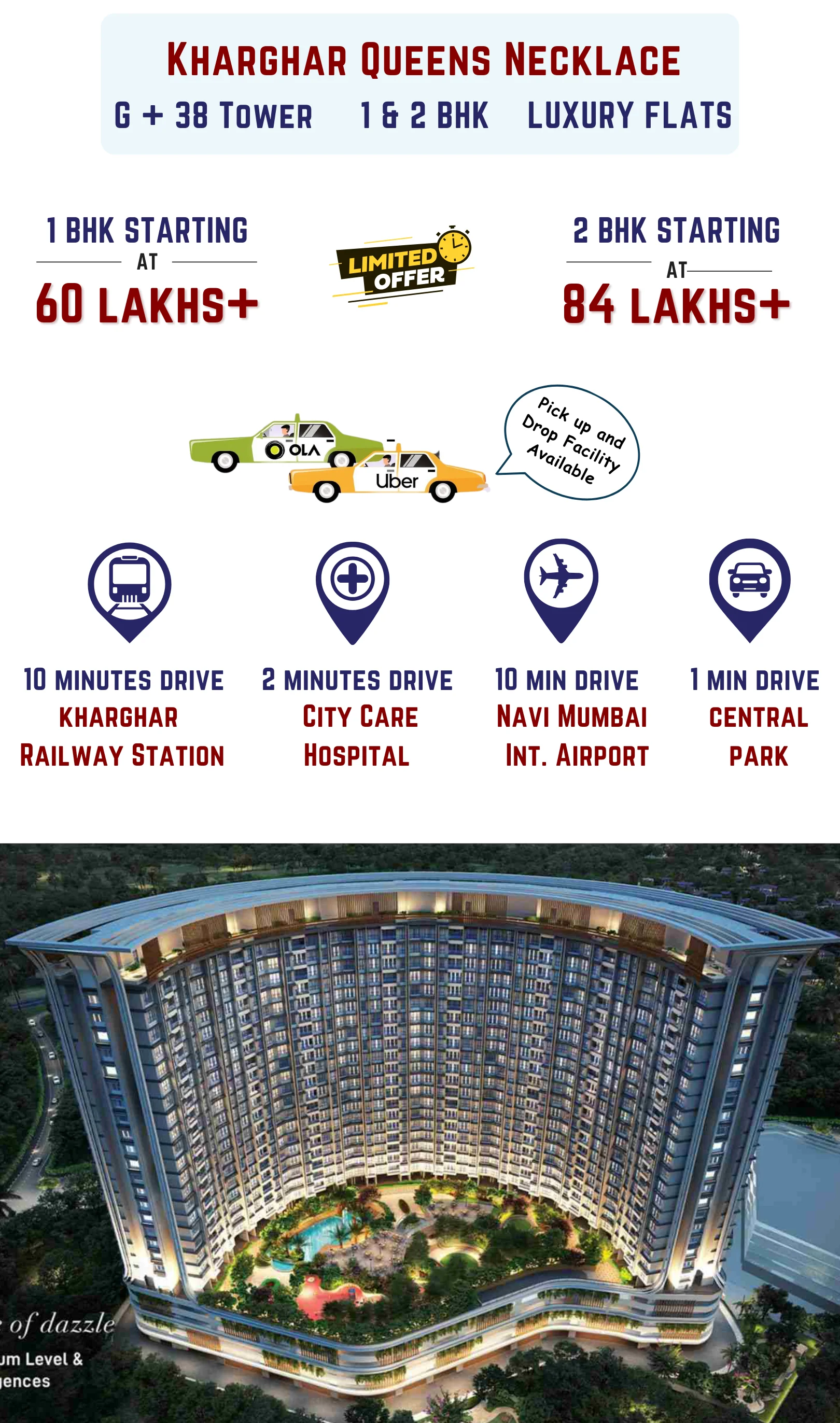 Welcome to Kharghar's Most Iconic Landmark: Queens Necklace! Experience an elevated lifestyle in this stunning G+38 Storeys tower, featuring meticulously designed 1 &2 BHK residences. A home that redefines luxury, where every detail is crafted for an unparalleled ownership experience in Navi Mumbai.