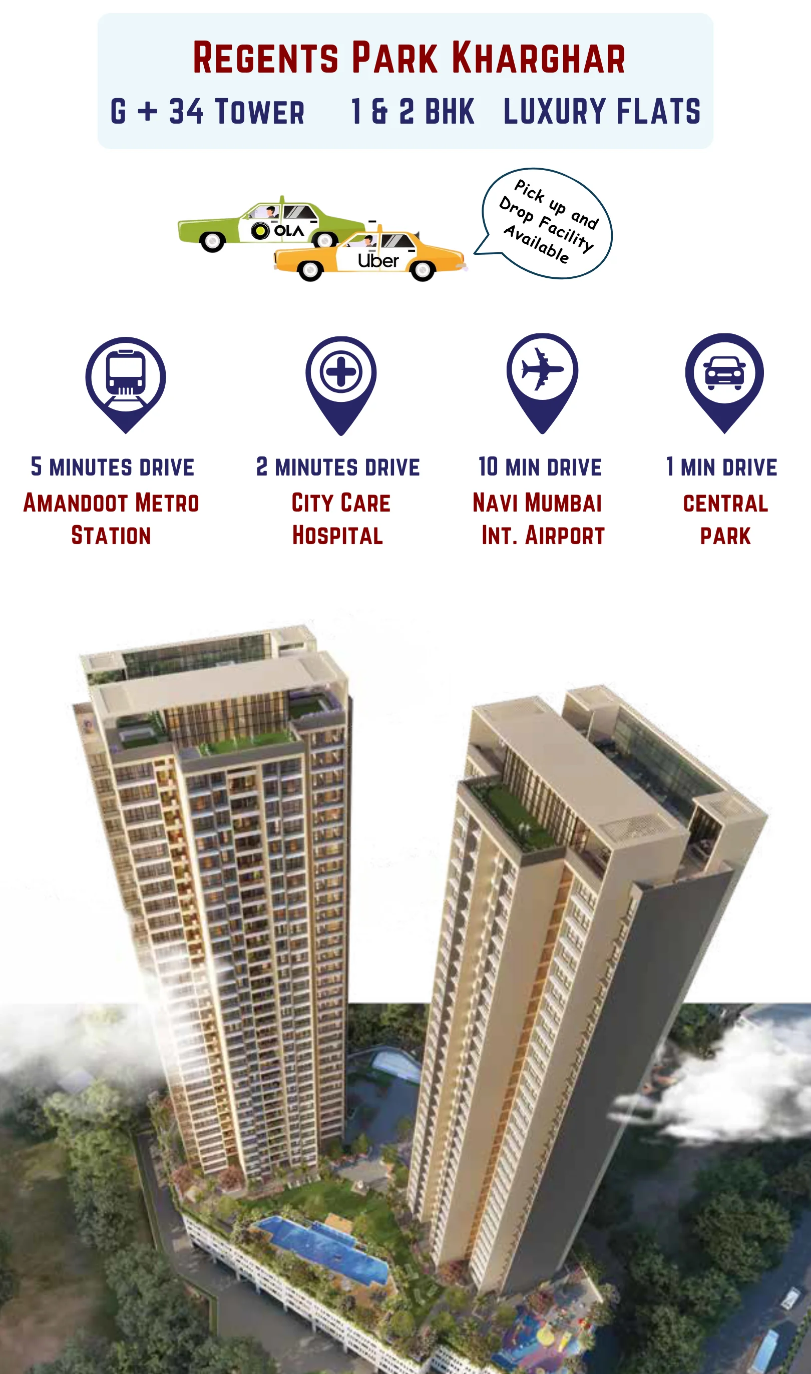 Welcome to Kharghar's Most Iconic Landmark: Regents Park! Experience an elevated lifestyle in this stunning G+34 floor tower, featuring meticulously designed 1 &2 BHK residences. A home that redefines luxury, where every detail is crafted for an unparalleled ownership experience in Navi Mumbai.